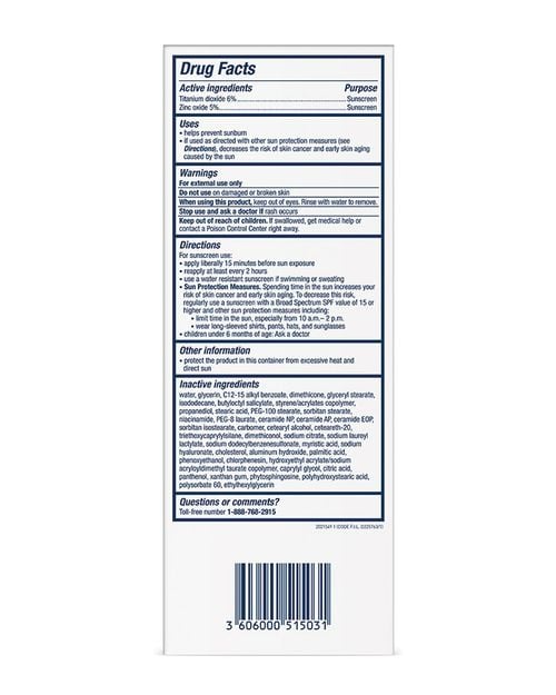 INACTIVE INGREDIENTS: WATER, GLYCERIN, C12-15 ALKYL BENZOATE, DIMETHICONE, GLYCERYL STEARATE, ISODODECANE, BUTYLOCTYL SALICYLATE, STYRENE/ACRYLATES COPOLYMER, PROPANEDIOL, STEARIC ACID, PEG-100 STEARATE, SORBITAN STEARATE, NIACINAMIDE, PEG-8 LAURATE, CERAMIDE NP, CERAMIDE AP, CERAMIDE EOP, SORBITAN ISOSTEARATE, CARBOMER, CETEARYL ALCOHOL, CETEARETH-20, TRIETHOXYCAPRYLYLSILANE, DIMETHICONOL, SODIUM CITRATE, SODIUM LAUROYL LACTYLATE, SODIUM DODECYLBENZENESULFONATE, MYRISTIC ACID, SODIUM HYALURONATE, CHOLESTEROL,ALUMINUM HYDROXIDE, PALMITIC ACID, PHENOXYETHANOL, CHLORPHENESIN, HYDROXYETHYL ACRYLATE/SODIUM ACRYLOYLDIMETHYL TAURATE COPOLYMER, CAPRYLYL GLYCOL, CITRIC ACID, PANTHENOL, XANTHAN GUM, PHYTOSPHINGOSINE, POLYHYDROXYSTEARIC ACID, POLYSORBATE 60, ETHYLHEXYLGLYCERIN