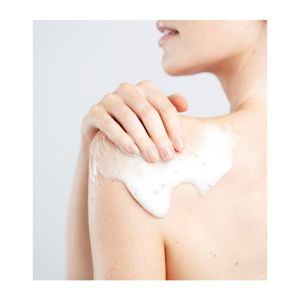 - Squeeze a small amount of shower cream into wet palms, massage over the body, and rinse off.