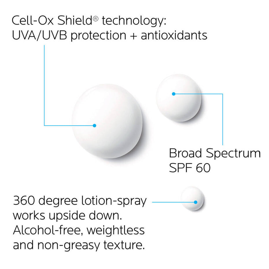 This alcohol-free, non-greasy spray sunscreen goes on as a visible lotion providing advanced protection. 360-degree spray application allows for even coverage for sport and outdoor activities. It is formulated with Cell-Ox Shield® technology: broad spectrum UVA/UVB protection with antioxidants.