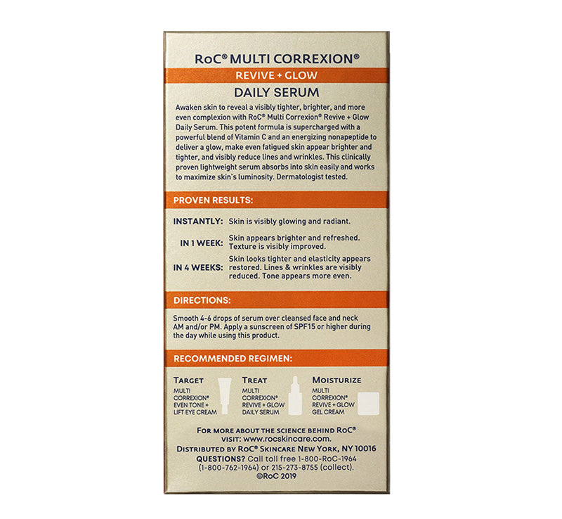 RoC Multi Correxion Revive + Glow Daily Serum with Vitamin C, 1.0 fl oz 30ml is a Face Serum from ROC and belongs to the categories face serum, ROC, skincare.