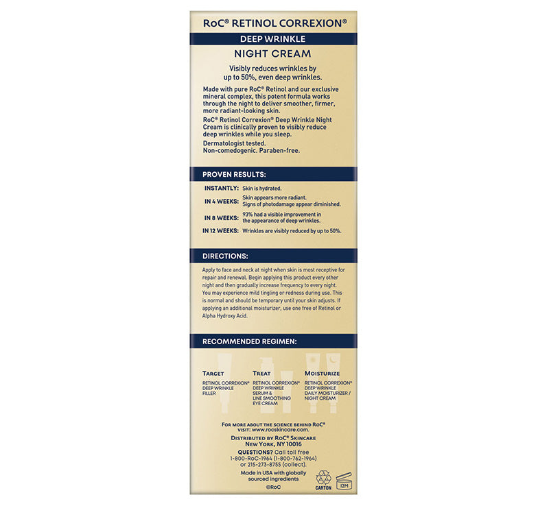 Introducing RoC Retinol Correxion Deep Wrinkle Night Cream, a potent anti-aging treatment that targets stubborn wrinkles and fine. This ROC night cream is formulated with effective ingredients that help to bright and soft skin, and reduce deep wrinkles on your face. This night cream is your key to smoother, younger-looking skin. For best results use daily before sleep.