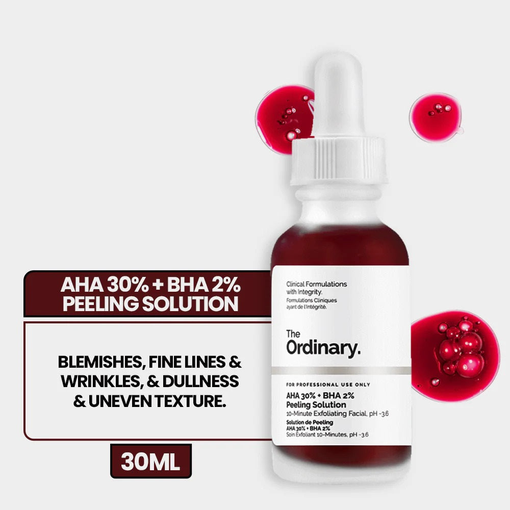 Introducing "The Ordinary Serum "Aha 30% + Bha 2% Peeling Solution" which is formulated with hydroxy acids (AHAs) and beta hydroxy acids (BHAs). This ordinary serum is especially designed to improve skin texture, minimize pores, reduce fine lines, and promote a brighter, more even complexion. Make it necessary to your skincare routine.